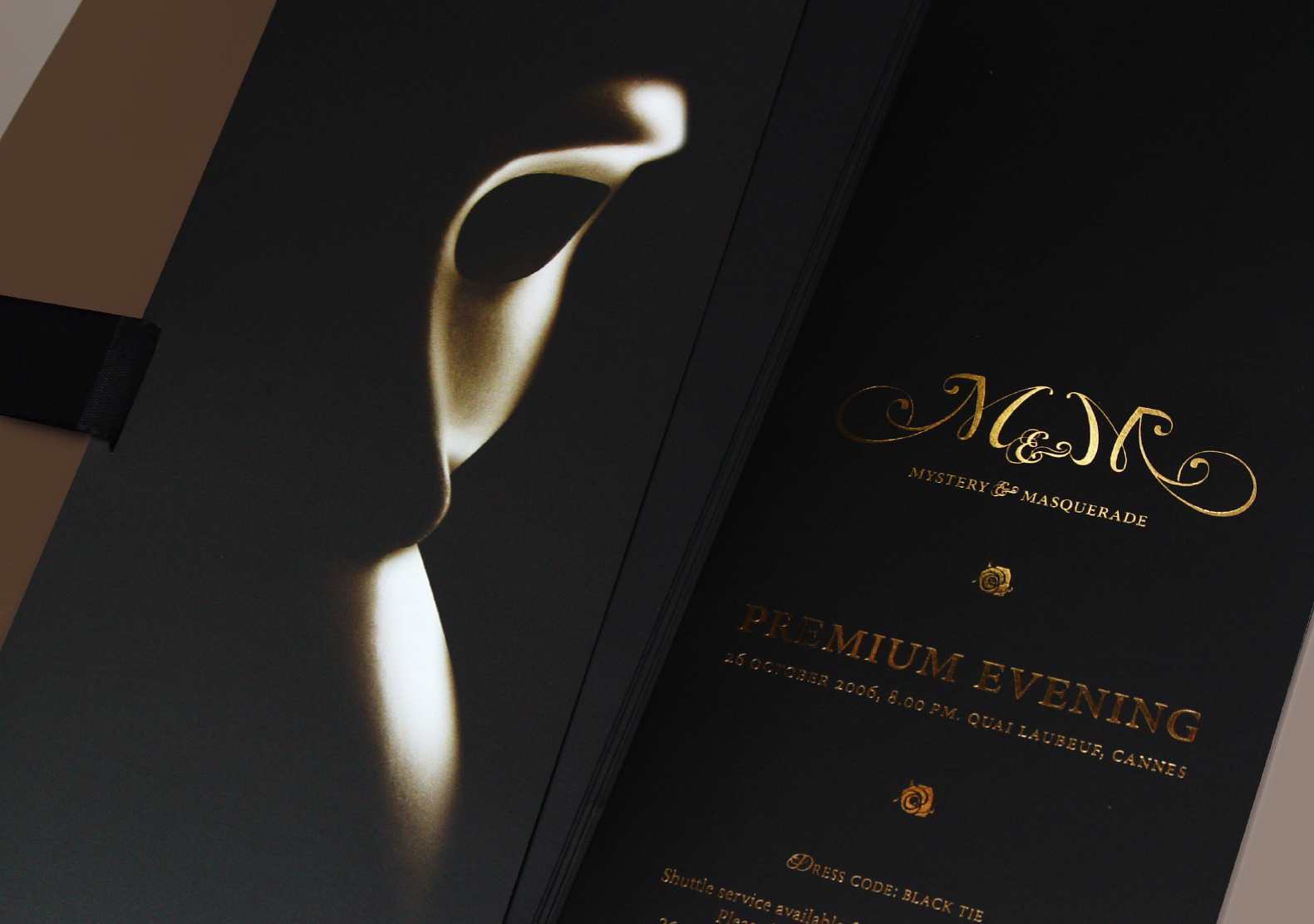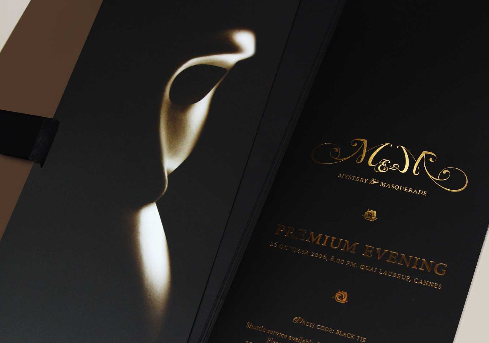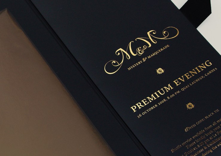 Premium Evening. Mystery & Masquerade juin 8, 2010septembre 29, 2016 Agence Punk Invitation Diner Black Tie Finition : lamination mat, ruban soir noir, dorure à chaud